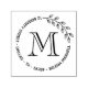 Un simple trait d'une couronne botanique dessinée à la main avec une adresse circulaire et une initiale au milieu. Veuillez noter que vous devrez peut-être ajuster les informations que vous entrez en ajoutant ou en supprimant des caractères ou des espaces, afin d'aligner correctement le nom et l'adresse.