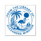 Tampon Auto-encreur Flamant rose Palm Tree Sailboat Library Nom du liv