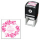 Tampon Auto-encreur Fleur couronne Cursive Fuchsia Adresse de retour