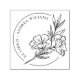 Tampon encreur auto-entonçant Floral Botanique de la bibliothèque d'Ex Libris représentant des fleurs dessinées à la main avec des éléments botaniques, votre nom dans une typographie ronde à gauche avec une bordure circulaire fine.
