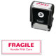This business self-inking stamp is a text template. You can edit the text to show a custom message. (Shown: Fragile Handle With Care) There is a border around the text.