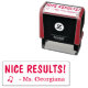 Cette conception motivante de timbres en caoutchouc comprend le message de motivation "NICE RESULTS!" et un nom d'enseignant customisé. Il présente également une note musicale décorative. Il pourrait être utilisé par un enseignant ou un éducateur pour marquer les affectations, pour reconnaître que l'étudiant a bien fait.