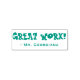 Ce design inspirant de timbres en caoutchouc comprend le message motivant "GRAND TRAVAIL !" et le nom d'un enseignant customisé. Il pourrait être utilisé par un enseignant, un éducateur ou un tuteur pour évaluer le travail des étudiants, pour indiquer qu'un étudiant a fait un travail exceptionnel.