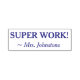 Ce design de timbres en caoutchouc encourageant comporte le message positif "SUPER TRAVAIL!" et un nom d'éducateur personnalisé. Il pourrait être utilisé par un enseignant, un éducateur ou un tuteur pour marquer les affectations, pour reconnaître que l'étudiant a bien fait.