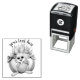 Problème de casse au transport, immédiatement re-fabriqué et livré en un temps record ! Principe technique du tampon standard efficace. Grace aux motifs "logo"proposés (d'un graphisme relativement simple mais efficace) et des choix perso' des polices et d'agencement dans la composition du tampon, la création est presque infini, du plus classique au plus insolite... Impossible donc de ne pas avoir "son" tampon bien personnel ! Impression parfaite sans "tache parasite". Très bonne finesse de détails...