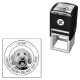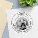 Photo d'animal de compagnie personnalisable et timbre texte. Veuillez noter que vous devrez peut-être ajuster les informations en ajoutant ou en supprimant certains caractères pour aligner le texte correctement.