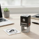 Problème de casse au transport, immédiatement re-fabriqué et livré en un temps record ! Principe technique du tampon standard efficace. Grace aux motifs "logo"proposés (d'un graphisme relativement simple mais efficace) et des choix perso' des polices et d'agencement dans la composition du tampon, la création est presque infini, du plus classique au plus insolite... Impossible donc de ne pas avoir "son" tampon bien personnel ! Impression parfaite sans "tache parasite". Très bonne finesse de détails...