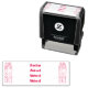Problème de casse au transport, immédiatement re-fabriqué et livré en un temps record ! Principe technique du tampon standard efficace. Grace aux motifs "logo"proposés (d'un graphisme relativement simple mais efficace) et des choix perso' des polices et d'agencement dans la composition du tampon, la création est presque infini, du plus classique au plus insolite... Impossible donc de ne pas avoir "son" tampon bien personnel ! Impression parfaite sans "tache parasite". Très bonne finesse de détails...