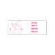 Problème de casse au transport, immédiatement re-fabriqué et livré en un temps record ! Principe technique du tampon standard efficace. Grace aux motifs "logo"proposés (d'un graphisme relativement simple mais efficace) et des choix perso' des polices et d'agencement dans la composition du tampon, la création est presque infini, du plus classique au plus insolite... Impossible donc de ne pas avoir "son" tampon bien personnel ! Impression parfaite sans "tache parasite". Très bonne finesse de détails...