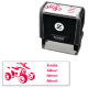 Problème de casse au transport, immédiatement re-fabriqué et livré en un temps record ! Principe technique du tampon standard efficace. Grace aux motifs "logo"proposés (d'un graphisme relativement simple mais efficace) et des choix perso' des polices et d'agencement dans la composition du tampon, la création est presque infini, du plus classique au plus insolite... Impossible donc de ne pas avoir "son" tampon bien personnel ! Impression parfaite sans "tache parasite". Très bonne finesse de détails...