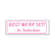 Cette conception positive de timbres en caoutchouc comprend le message de rétroaction positive "MEILLEUR TRAVAIL ENCORE!" et le nom d'un tuteur customisé. Il pourrait être utilisé par un enseignant, un éducateur ou un tuteur de l'école pour marquer les affectations, pour reconnaître que l'élève a bien fait.
