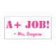 Ce design inspirant de timbres en caoutchouc comprend le message de motivation "A+ JOB!" et un nom d'enseignant personnalisé. Il pourrait être utilisé par un enseignant ou un éducateur pour évaluer le travail des étudiants, pour reconnaître qu'un étudiant a fait un travail exceptionnel.