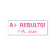 Ce design de timbre en caoutchouc positif comporte le message inspirant "A+ RESULTS!" et le nom d'un enseignant ou d'un éducateur personnalisé. Il pourrait être utilisé par un enseignant ou un éducateur pour marquer les affectations, pour reconnaître qu'un étudiant a bien fait.