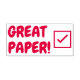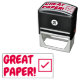 Ce design de timbres en caoutchouc motivant comporte le message "GREAT PAPER!". Il dispose également d'une icône de coche décorative. Il pourrait être utilisé par un enseignant, un éducateur, un instructeur ou un tuteur pour marquer les affectations, pour indiquer que l'étudiant a fait un excellent travail.