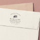 Le cachet en caoutchouc de l'adresse de retour chic de l'île comporte vos prénoms courbés gracieusement sur une illustration de fleur d'hibiscus tropical, avec votre nom de famille et les coordonnées de retour en dessous.