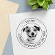 Photo d'animal de compagnie personnalisable et timbre texte. Veuillez noter que vous devrez peut-être ajuster les informations en ajoutant ou en supprimant certains caractères pour aligner le texte correctement.