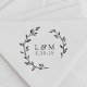 Conçu sur mesure Enregistrer la date timbre monogramme auto-encastré comportant une couronne de laurier rustique dessinée à la main avec initiales de mariée et mariée/couple et date mariage. Personnalisez ce timbre de mariage élégant aujourd'hui pour donner une touche de style à vos enveloppes !