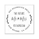 Ce timbre d'adresse de retour est une façon fantastique de faire savoir à vos amis et à votre famille que vous êtes fiancé! Ce design présente "le futur Monsieur et Madame" et votre nom de famille en police rustique et en lettres avec votre adresse de retour dans une courbe autour du haut et du bas pour lui donner une forme circulaire. De chaque côté du timbre, pour continuer la forme ronde, il y a deux branches délicates. Cliquez sur le bouton "personnaliser" pour ajouter votre nom et votre adresse.