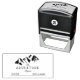 Problème de casse au transport, immédiatement re-fabriqué et livré en un temps record ! Principe technique du tampon standard efficace. Grace aux motifs "logo"proposés (d'un graphisme relativement simple mais efficace) et des choix perso' des polices et d'agencement dans la composition du tampon, la création est presque infini, du plus classique au plus insolite... Impossible donc de ne pas avoir "son" tampon bien personnel ! Impression parfaite sans "tache parasite". Très bonne finesse de détails...