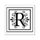 monogramme, initial, élégant, noir, blanc, carré, bordure, lettre R