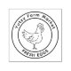 Farm chicken within double circle border. Your own business name and tagline or location encircles the center picture with customizable word "Fresh" below picture.