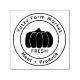 Pumpkin within double circle border. Your own business name and tagline or location encircles the center picture with customizable word "Fresh" below pumpkin symbol.