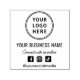 Timbre promotionnel pour votre entreprise avec votre logo, votre nom d'entreprise et votre facebook, instagram et l'adresse de médias sociaux de tiktok pour les clients et les clients de se connecter avec vous en ligne.