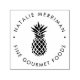 Ajoutez du charme estampillé à vos produits, emballages et correspondance avec ce cachet d'adresse de retour chic qui correspond à notre suite de marque Ananas. La conception comporte deux zones pour votre texte personnalisé, courbées autour d'une illustration de silhouette d'ananas.