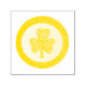 Ce superbe timbre auto-encastré présente une image graphique d'une pièce d'or avec deux nuances d'or. Le cercle extérieur a une texture rugueuse. À l'intérieur du cercle intérieur de la pièce se trouve un shamrock doré texturé composé de 3 feuilles et d'une tige.