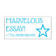 Ce design motivant de timbres en caoutchouc comprend le message de retour inspirant "MARVELOUS ESSAY!" et le nom d'un éducateur personnalisé. Il dispose également d'une icône décorative en forme d'étoile. Il pourrait être utilisé par un enseignant, un éducateur, un instructeur ou un tuteur pour marquer les affectations, pour reconnaître que l'élève a bien fait.