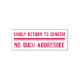 Cette conception de base d'estampille comporte les messages "Kindly Return To Sender !" et "No such Addressee". Il peut être utilisé pour indiquer que le courrier reçu a été livré à la mauvaise adresse ou à un destinataire inconnu, et doit être retourné à l'expéditeur.
