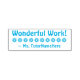 Ce design motivant de timbres en caoutchouc comprend le message de louange "Merveilleux travail!" et un nom de tuteur personnalisé. Il dispose également d'icônes de fleurs décoratives. Il pourrait être utilisé par un enseignant, un éducateur, un instructeur ou un tuteur pour marquer les affectations, pour indiquer que l'étudiant a fait un excellent travail.