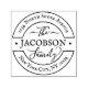 Ce timbre d'écriture manuscrite circulaire moderne et personnalisé sera parfait pour les mailings. Dans la typographie circulaire est votre adresse de rue ci-dessus et votre ville, l'état et le code postal ci-dessous. Le design du centre se lit "La famille (votre nom de famille)" dans une écriture manuscrite moderne. Conçu par un artiste de renommée mondiale ©Tim Coffey.