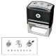 Problème de casse au transport, immédiatement re-fabriqué et livré en un temps record ! Principe technique du tampon standard efficace. Grace aux motifs "logo"proposés (d'un graphisme relativement simple mais efficace) et des choix perso' des polices et d'agencement dans la composition du tampon, la création est presque infini, du plus classique au plus insolite... Impossible donc de ne pas avoir "son" tampon bien personnel ! Impression parfaite sans "tache parasite". Très bonne finesse de détails...