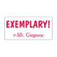 Ce design de timbre en caoutchouc positif comporte le message inspirant "EXEMPLAIRE !" et le nom d'un éducateur personnalisé. Il pourrait être utilisé par un enseignant, un éducateur ou un tuteur pour marquer les affectations, pour indiquer que l'étudiant a fait un excellent travail.