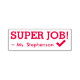 Ce design amusant de timbres en caoutchouc comprend le message motivant "SUPER JOB!" et le nom d'un enseignant personnalisé. Il est également doté d'une coche décorative. Il pourrait être utilisé par un enseignant ou un éducateur pour marquer les affectations, pour reconnaître que l'étudiant a bien fait.