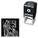 Problème de casse au transport, immédiatement re-fabriqué et livré en un temps record ! Principe technique du tampon standard efficace. Grace aux motifs "logo"proposés (d'un graphisme relativement simple mais efficace) et des choix perso' des polices et d'agencement dans la composition du tampon, la création est presque infini, du plus classique au plus insolite... Impossible donc de ne pas avoir "son" tampon bien personnel ! Impression parfaite sans "tache parasite". Très bonne finesse de détails...