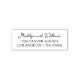 Créez un timbre d'adresse de retour mariage contemporain et élégant, avec une police de script tendance en noir et blanc intemporel pour Nom de couple. Le design respire la simplicité et l'élégance, suivant une approche moderne et minimaliste. Personnalisez le texte sans effort pour concevoir un design distinctif pour votre occasion. L'incorporation d'une police de style d'écriture informelle ajoute une touche de charme et d'individualité. Ce timbre combine simplicité, style et personnalisation pour en faire un complément parfait à votre journée spéciale.