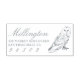 Pour les magiciens et les amateurs de faune sauvage, ce timbre est parfait pour ajouter une touche personnelle à votre courrier. Cette estampille d'adresse de retour comporte votre nom ou nom de famille dans une police de script élégante, avec vos coordonnées dans une typographie intelligente. À droite du texte se trouve une chouette enneigée dessinée à la main.