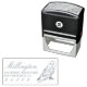 Problème de casse au transport, immédiatement re-fabriqué et livré en un temps record ! Principe technique du tampon standard efficace. Grace aux motifs "logo"proposés (d'un graphisme relativement simple mais efficace) et des choix perso' des polices et d'agencement dans la composition du tampon, la création est presque infini, du plus classique au plus insolite... Impossible donc de ne pas avoir "son" tampon bien personnel ! Impression parfaite sans "tache parasite". Très bonne finesse de détails...