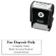 Ce timbre auto-encastré a un pour dépôt seulement modèle. La ligne supérieure est en caractères gras. Il comprend des lignes de texte d'affichage pour le nom de votre société et le numéro de compte bancaire. Tout le texte peut être modifié ou supprimé.