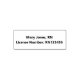 Ce timbre auto-collant est un modèle texte pour qu'une infirmière puisse apposer son nom et son numéro de licence sur des documents. La ligne supérieure est imprimée pour votre nom. La ligne de fond du texte d'affichage correspond à votre numéro de licence. Le texte est en gras.