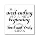 Timbre en caoutchouc mariage "Merci" avec un élégant séparateur, les noms du couple et la date du mariage, et texte, "Une douce fin à un nouveau commencement."