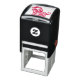 Problème de casse au transport, immédiatement re-fabriqué et livré en un temps record ! Principe technique du tampon standard efficace. Grace aux motifs "logo"proposés (d'un graphisme relativement simple mais efficace) et des choix perso' des polices et d'agencement dans la composition du tampon, la création est presque infini, du plus classique au plus insolite... Impossible donc de ne pas avoir "son" tampon bien personnel ! Impression parfaite sans "tache parasite". Très bonne finesse de détails...