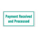 Ce cachet en caoutchouc contient le message "Paiement reçu et traité". Il pourrait être utilisé pour marquer une facture ou une facture comme ayant été payée.