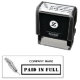 Un tampon encreur personnalisable avec votre propre texte, simple et élégant, avec la mention « payée intégralement ». Personnalisez davantage avec votre couleur d'encre. Un tampon encreur parfait pour notaire avec plume « payée intégralement ».