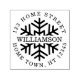 Un tampon personnalisé auto-encreur circulaire avec un flocon de neige derrière votre nom de famille et entouré de vos coordonnées. Idéal pour ajouter une touche manuscrite supplémentaire à vos cartes de fêtes. Conçu par Thisisnotme©