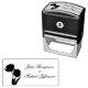 Problème de casse au transport, immédiatement re-fabriqué et livré en un temps record ! Principe technique du tampon standard efficace. Grace aux motifs "logo"proposés (d'un graphisme relativement simple mais efficace) et des choix perso' des polices et d'agencement dans la composition du tampon, la création est presque infini, du plus classique au plus insolite... Impossible donc de ne pas avoir "son" tampon bien personnel ! Impression parfaite sans "tache parasite". Très bonne finesse de détails...