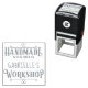 Marquez vos cadeaux de Noël faits main avec votre propre timbre auto-encastré "fait main avec amour en atelier". Le design comprend un design décoratif de bordure de coeur avec "fait à la main avec amour en atelier" affiché dans un style vintage lettrage et personnalisé avec nom pour un look vraiment personnalisé. Vous pouvez customiser la taille, la police et la disposition du texte pour votre propre préférence de conception personnelle.