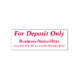 Cette modeste conception de timbres en caoutchouc comporte le message "Pour dépôt seulement", ainsi qu'un nom personnel/commercial personnalisable et un numéro de compte. Il pourrait peut-être être utilisé par un comptable ou un particulier pour ajouter facilement une note restrictive à un chèque.